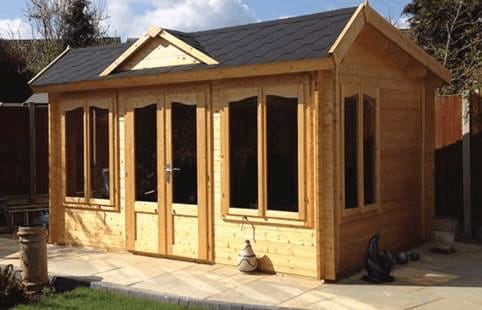 The Brookhaven is a traditional design Log Cabin with cylinder locking double door and surrounding windows, all featuring real 4mm glass. The walls are 34mm tongue and groove construction and 19mm tongue and groove floor and roof with the option of felt or shingles covering. The double doorway has a low threshold door sill with stainless steel protective capping and laminated frame. The cabin is supplied unfinished and can be stained or painted in any colour to suit. It has a manufacturer’s 5-year guarantee.