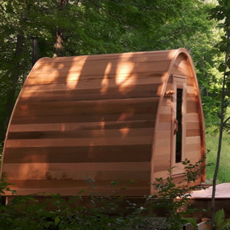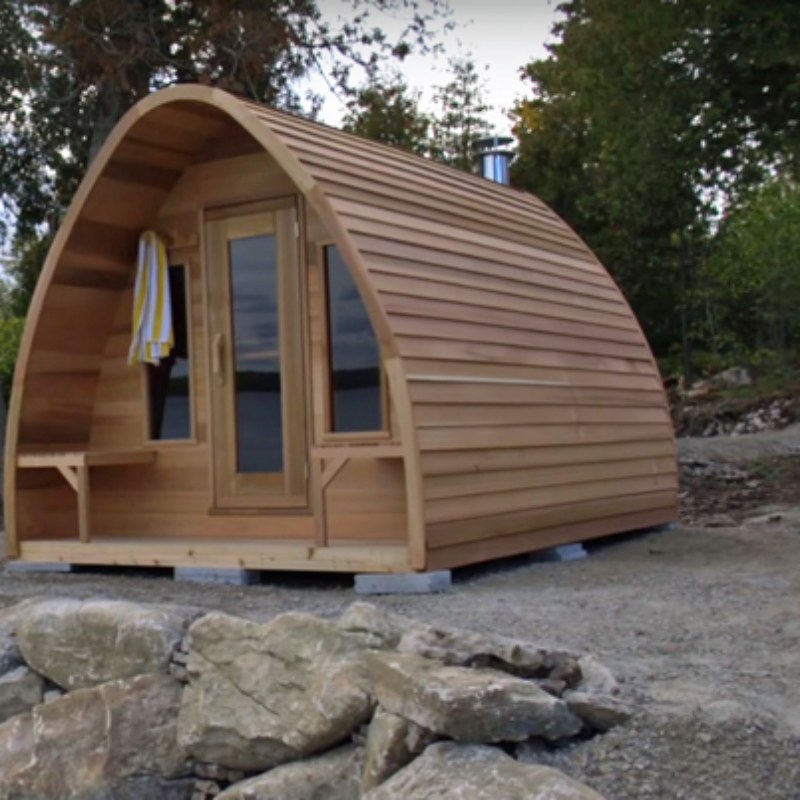 These organic rain-drop shaped outdoor saunas are the newest sensation to hit Canada. The extra head-space and wonderful design comes is made exclusively from Clear Western Red Cedar. With endless options, you can even create your own outdoor sauna. With your Outdoor POD Sauna you must either order bevel siding or cedar shingles to make the finished product water tight. You can order the kit without an extra roofing material but it is recommended that you install your own asphalt shingles or other roofing material on top yet.