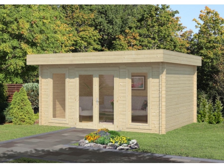 The Connecticut 1 is a contemporary designed pent roof Log Cabin with cylinder locking double door and opening double glazed windows. Also available with door and window bars. The walls are 44mm tongue and groove construction. The optional 19mm tongue and groove floor. The double doors have a low threshold door sill with stainless steel protective capping and a laminated frame. The height of this cabin is under 2.5m. The cabin is supplied unfinished and can be stained or painted in any colour to suit. It has a manufacturer’s 5-year guarantee.