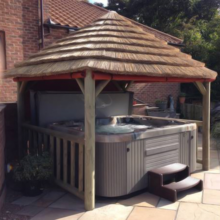 4.2M THATCH GAZEBO + EVOLUTION SC858 HOT TUB