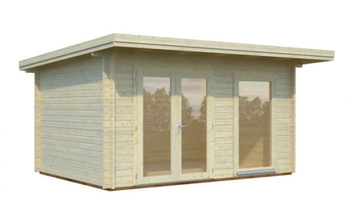 The Idaho 3 is a contemporary designed pent roof Log Cabin with cylinder locking double door and opening double glazed windows. Also available with door and window bars. The walls are 44mm tongue and groove construction and 19mm tongue and groove floor and roof with the option of felt or shingle roof covering. The double doors have a low threshold door sill with stainless steel protective capping and a laminated frame. The height of this cabin is under 2.5m. The cabin is supplied unfinished and can be stained or painted in any colour to suit. It has a manufacturer’s 5-year guarantee.